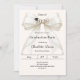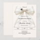 Celebrate your achievement with this elegant ivory bow graduation invitation. The design features a large, sophisticated satin ribbon adorned with delicate pearl strings and a subtle mortarboard icon. A cream colored background. It is the perfect choice for high school or college seniors looking for a feminine and chic announcement.
