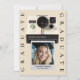 This Trendy Graduation Party Invite Announcement features a Vintage retro design with multiple photos. In the front Personalize the vintage Polaroid camera photo frame with your favorite graduation picture. Add the graduate name and year. Turn over the formal graduation card to fill a photo collage of additional 3 photos. Enter your graduation party details. Browse our graduation collection for matching products. Contact us for additional customizations or assistance with transferring this design to other products prior to placing your order. Thanks for stopping by! Design is copyright of Soar in Style Designs LLC.