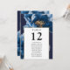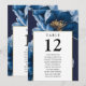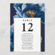 Esses elegantes números de mesa de casamento florais azul marinho e dourado podem ser personalizados com os nomes dos seus convidados em tipografia moderna. Projetado por Thisisnotme©