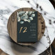 Eleve sua recepção de casamento com este elegante número de mesa e gráfico de assentos com um sofisticado design de folhagem de eucalipto. As folhas de eucalipto suaves, mudas, acentuadas com toques de ouro, adornam o topo da carta contra um fundo escuro e rico. O número da tabela é exibido de forma destacada em um script elegante, complementado por uma lista de nomes de hóspedes bem organizada em uma fonte serif refinada. Este gráfico de assentos de na moda combina perfeitamente a elegância moderna com um toque natural, garantindo que seus convidados encontrem seus assentos com facilidade e graça. Ideal para casamentos ou qualquer evento formal onde beleza e organização se encontram.