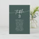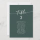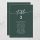 Estes cartões de assentos verdes e esmeraldas são perfeitos para um casamento minimalista. O design verde boêmico moderno da floresta de caçadores de escuros e modernos apresenta uma caligrafia rústica simples com um estilo único, porém clássico. Este gráfico de números de tabela pode ser usado na mesa ou como placas de assentos suspensos. O design impressão na frente e atrás. Personalize cada número de tabela de que você precisa, adicionando cada um ao seu carrinho individualmente.