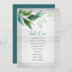 Projetado para combinar com o conjunto de papelaria de casamento de madeira branca da VG Invites, este gráfico de assentos botânico rústico apresenta um spray de folhas verdes de aquarela em tons de verdes e azuis vibrantes sobre a sua redação desejada. A parte de trás apresenta uma cor azul-esverdeada complementar. Para ver a papelaria de casamento boho chic correspondente, visite Do Tell A Belle no Zazzle.