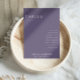Este assento formal da mesa 6 de casamento roxo é perfeito para um casamento rústico. A design apresenta uma bela fonte em um fundo roxo. A placa impressão verso (frente e verso).