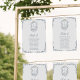 Placa de Gráficos de Número de Sentados com Nomes de Convidado, Dusty Blue Monograma Floral Crest Nave de Casamento. Todos os textos estão pré-organizados para que você personalize fácil e rapidamente com seus próprios detalhes.