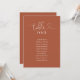 Esses elegantes cartões de gráfico de assentos com número de mesa duplo lado terracota coração script são perfeitos para todas as celebrações. Desenhado por Thisisnotme©