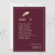 Cartões de Gráfico de Número de Tabela Folha Dourada e Borgonha. Faça uma declaração de elegância do eterno com este número de mesa e cartão de placa de lugar clássico e sofisticado. Perfeito para um casamento formal, festa de aniversário, ou qualquer evento especial, esta design combina cores ricas com uma estética minimalista para guiar seus convidados com estilo. Um fundo burgundy profundo e luxuoso proporciona a canvas perfeita para os sotaques dourados que se cintilam. Essa combinação de cores ricas expele sofisticação e é a escolha ideal para as comemorações do outono e do inverno. Um solteiro, delicadamente ilustrado, folha de ouro no topo adiciona um toque de beleza natural e encanto refinado. O sutil acabamento metálico pega a luz, dando ao cartão uma sensação sofisticada. A proeminente "Mesa #" é mostrada em uma bela fonte de script fluente, enquanto a lista de nomes de convidados é apresentada em uma fonte sans-serif limpa e legível. Você pode personalizar facilmente este cartão com seu próprio número de tabela, lista de convidados, a data do casamento e os nomes do casal. Esse emparelhamento tipográfico inteligente garante que o cartão seja uma obra de arte e uma ferramenta prática para seus hóspedes. Esta placa também apresenta um design na parte traseira que é um belo espelho da frente, garantindo que pareça impressionante de qualquer ângulo. Este gráfico de assentos não é apenas uma lista de nomes; é parte integrante da decoração do seu evento, reunindo todos os elementos do design clássico — cor rica, tipografia bonita e um motivo simples, mas poderoso — para criar uma peça que seus convidados admirarão. Compare isso com nossos convites, cartões de menu e obrigado, notas para criar um pacote perfeitamente coordenado para seu dia especial. Clique em "Personalizar" para torná-lo seu e garantir que seu evento seja bonito e perfeitamente organizado.