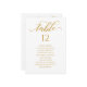 Cartões de Gráfico de Número de Sentado da Tabela de Script de Caligrafia Dourada, modernos e elegantes, que podem ser personalizados com seu texto e adicionar cada placa de número de tabela ao seu carrinho, um a um. Clique no botão "Personalizar" e use nossa ferramenta design para modificar este modelo. Veja a Design de Arte Gráfica para outros produtos que combinam com este design!