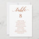 Cartões de Gráfico de Número de Sentado da Tabela de Script de Caligrafia Laranja Queimada, modernos e elegantes, que podem ser personalizados com seu texto e adicionar cada placa de número de tabela ao seu carrinho, um a um. Clique no botão "Personalizar" e use nossa ferramenta design para modificar este modelo. Veja a Design de Arte Gráfica para outros produtos que combinam com este design!