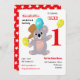 Ursinho de ursos koala australianos super fofos cercado por balões de festa e vestindo um chapéu tradicional e apontando para a idade do seu filho que é mostrado aqui como um para o primeiro aniversário, mas que se sinta livre para editar isso para qualquer idade.