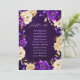 Elegante gráfico de assentos de casamento sobre o tema ouro roxo, realçado, com elegante buquê de roxo real, índigo, ouro, flores rosa amarelas e folhas de eucalipto. Entre em contato comigo para obter ajuda sobre a personalização ou se você precisar de outro produto com este design.