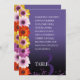 Adicione estilo à sua recepção de casamento com este gráfico de assentos de mesa com tema floral, que permite aos hóspedes encontrar a sua mesa. Apresenta elegantes letras brancas, terras de margaridas africanas coloridas, e confete roxo lavanda em um violeta roxo ao fundo preto. Personalizar com os nomes dos participantes e o número da tabela. Design © W.H. Sim. Mais informações em zazzle.com/expressionsoccasions