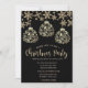 Um convite elegante para festas de férias com flocos de neve de ouro com bolas de ouro em fundo preto. Estes belos convites de Natal são perfeitos para convites de festas de janto de Natal, convites para troca de presentes de Natal, angariadores de fundos de Natal, convites para bolas de férias e outros eventos realizados durante o mês de dezembro. Use apenas os campos modelo para adicionar suas próprias informações de evento.