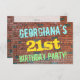 Este design convite de aniversário de divertido apresenta uma mensagem como "O PARTIDO aniversário de 21 anos DA GEORGIANA!", onde o nome pode ser personalizado, na frente. O fundo apresenta uma representação de uma parede de tijolos constituída por alguns tijolos de cor castanha avermelhada. O texto de mensagem personalizável na frente apresenta cores como azul, amarelo e verde, e tem uma aparência inspirada pelo grafite pintado. A parte traseira apresenta uma mensagem personalizável que pode incluir detalhes relevantes sobre a festa de aniversário. Convites de festas de aniversários como esta podem ser uma maneira divertida de convidar a família e os amigos para uma festa de aniversário que está sendo realizada para alguém que está comemorando seus vinte e um anos. [~Z0000287]