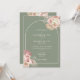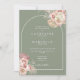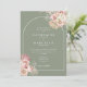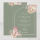 Pampas floral verde sage boho, aquarela de grama e moldura de arco chique emolduram os detalhes da sua celebração de casamento especial em tipografia elegante com iniciais de monograma no verso deste convite de casamento. Criado por Thisisnotme©