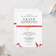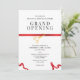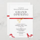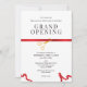 Um grande convite de abertura moderno e elegante, com um par de tesouras de ouro a cortar uma fita vermelha. Você também poderia usar este convite para eventos de empresas, festas de inauguração, revelações de produtos, novos negócios e ocasiões semelhantes.
