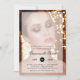 O grande convite de abertura de fotos moderno, com uma foto de uma linda mulher com uma cobertura e detalhes de seu evento em texto preto. Guarde a foto da amostra ou substitua-a por uma de suas. Seu nome de empresa está em uma fonte de script elegante e a data está em um círculo preto. Um design de chic e na moda que é perfeito para uma grande abertura de um salão de beleza ou cabelo.