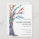 Convide os seus clientes para a celebração do Business Grand Open com este convite exclusivo. Apresenta uma árvore de mosaico colorida. Facilmente personalizável com os detalhes do evento. Mosaico original © Michele Davies.