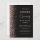 Convide os clientes para a grande abertura da sua empresa com este elegante convite moderno, com uma borda falsa rosa de ouro em fundo preto. O texto personalizável combina a letra rosa-rosa, a letra copperplate e a letra itálico. O verso apresenta um design brilhante rosa e preto correspondente.