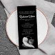 Convide convidados para comemorar a grande abertura do seu novo estabelecimento de alimentação limpa com o Grande Convite de Abertura do Restaurante do Pimento Negro e Branco. Perfeito para um restaurante fino especializado num cardápio saudável com vegetais frescos, comida orgânica ou bar de salada. Personalize-o com o nome da sua empresa, linha de etiqueta e detalhes do evento. Este convite personalizado apresenta uma fotografia a preto e branco de perto de dois pimentos de jardim entrelaçados em tons de cinza em fundo preto.