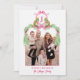 This Christmas Card has a preppy grandmillennial design featuring a Christmas crest with leopards wearing wreaths with a monogram letter at the top. The bottom has hot pink text that says "Merry Christmas" along with a photo. You can personalize with a name, year and your initial. The back has a coordinating scalloped pattern with a holiday message you can personalize.