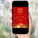 Uma cor vermelha de fundo profunda. Decorado com abóboras e flores laranja e amarelas. Personalize e adicione os detalhes da festa. Script de texto: Grateful e abençoado.