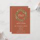 Com uma grinalda botânica elegante em um fundo de terracota, este convite de formatura de PhD pode ser personalizado com o nome e informações do graduado. Criado por Thisisnotme©