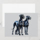 Uma ilustração estilizada de dois Grandes Dinamarqueses majestosos lado a lado, mostrando seus corpos elegantes, musculares e características elegantes. Os cachorros são negros com casacos lisos e brilhantes, acentuados por sombras dramáticas e destaques para enfatizar suas fortes físimas com um sutil efeito aquarela acrescentando um toque artístico.