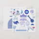 A minimalist design of Greek elements in shades of blue and white, perfect for travel lovers.