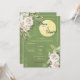 Featuring a lush green background adorned with delicate floral accents, this design captures the beauty of nature and celebration.