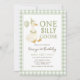Green Gingham One Silly Goose Birthday Invitation