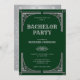 Convide seus hóspedes com este Excelente de vintage Gatsby para um convite de despedida de solteiro com uma borda decorativa de prata com tipografia elegante contra um fundo verde. Basta adicionar os detalhes do seu evento neste modelo fácil de usar para torná-lo um convite de tipo único. Sacudir a carta para revelar um lindo padrão de estrelas prateadas na parte traseira da carta.