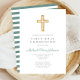 Convites Green Stripes Cross Religious First Communion