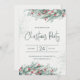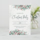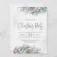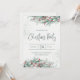 Um fundo de neve enfeitado com galhos verdes e groselhas vermelhas vibrantes.