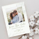 Anuncie seu dia especial com este cartão com fotos salva-vidas do casamento, com um modelo personalizável em tons de cor-de-água verde macio. Projetada com um elegante roteiro de caligrafia, uma tipografia refinada e um layout limpo, simples e minimalista, esta carta mostra lindamente sua foto favorita. Uma noiva personalizada e um monograma de noivos adiciona um toque de eterno, fazer a escolha perfeita para os casais que buscam uma maneira moderna e elegante de compartilhar seu próximo casamento.
