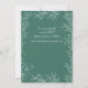 Este convite de casamento verde esmeralda oferece um pano de fundo ousado e sofisticado, acentuado com delicada arte botânica branca. O rico fundo verde proporciona um contraste elegante, enquanto os nomes do casal são apresentados numa letra de escrita graciosa e os detalhes do evento em texto sans-serif limpo. Perfeito para casamentos formais, de inverno, bóquicos ou inspirados na natureza, este design pode ser personalizado com a sua escolha de palavras, fontes e cores. A parte de trás do cartão pode incluir o site do seu casamento, permitindo que os convidados retornem ao RSVP online, vejam fotos do casal, acessem detalhes adicionais de casamento e encontrem informações sobre acomodações — fazer-as tão práticas quanto belas.
