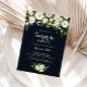 Este convite de festas verde azul-real floral verde é perfeito para um aniversário rústico, aposentadoria ou qualquer festa surpresa. O design apresenta elegantes pedras brancas de aquarela com folhagem verde em fundo azul escuro.