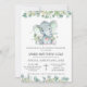 Personalize este belo batismo/convite batizante com os detalhes do seu partido de forma fácil e rápida, basta pressionar o botão personalizá-lo para reorganizar e formatar o estilo e a colocação do texto. Este convite apresenta folhas de aquarela eucalipto e um lindo elefante bebê. Itens correspondentes disponíveis no repositório! (c) O feliz Cat Studio.