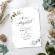 Aprecie seus hóspedes com este convite de casamento elegante e único com um design simples e limpo, uma caligrafia manuscrita linda e detalhes delicados de cor d'água verde. Opção para adicionar no verso todos os detalhes do casamento que você quiser (site do casamento, acomodações, direções, traje, registro ou qualquer coisa que você precise), OU, se você preferir o verso sem texto, simplesmente apague todo o texto da caixa de texto modelo para apagar.Voltar e frente com manchas de aquarelas moles em tons verdes. Design com a frase "Vamos nos casar" em uma caligrafia única mostrando seus detalhes de casamento.