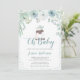 Este belo convite para chá de fraldas de borrego neutro em sexo apresenta flores brancas em aquarela e verde com letra caligráfica.
