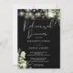Luzes de cordas elegantes, verde floral, convite jantado para ensaio preto e branco com os seus nomes e detalhes de janto ensaiados definidos no texto chic e as iniciais do seu monograma no verso. Projetado por Thisnotme©