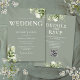 Este elegante convite para casamento verde sábio com tipografia verde pode ser personalizado com os detalhes do seu site de casamento e o seu código QR no verso. Projetado por Thisnotme©