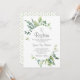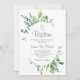 Batismo Convite Belo Verde Moldura de Aquarela em fundo branco torna este convite espantoso! Adicione os detalhes do evento usando o formulário modelo. O texto adicional pode ser adicionado à parte traseira, se necessário, usando o recurso Personalizar.