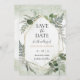 Delicate watercolour fern and eucalyptus leaves in soft sage green pair perfectly with gold geometric accents, creating a fresh yet refined look that suits garden weddings, rustic barn weddings, boho celebrations, and elegant modern affairs alike.