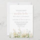 Este convite de casamento para o boda de flor selvagem boho verde é perfeito para um casamento moderno. O design apresenta flores silvestres cor-de-água rosa, pinceladas, amarelas e brancas dispostas em buquês elegantes.
