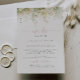 Esta flor selvagem boho verde que voltamos a votar no convite à renovação é perfeita para um evento rústico. O design apresenta flores silvestres cor-de-água rosa, pinceladas, amarelas e brancas dispostas em buquês elegantes.