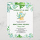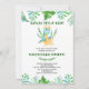 Celebrate the upcoming arrival of your little one with this adorable Greenery Dinosaur Baby Shower Invitation. Featuring a charming baby dinosaur hatching from an egg surrounded by lush greenery, this invite is perfect for a jungle or dinosaur-themed baby shower for a baby boy. Add a fun and wild touch to your baby shower with this cute and modern invitation that guests will love! BBS153