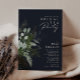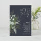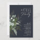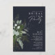 Nós projetamos este convite de festas de chá de noiva de marinho escuro verde e folha de ouro para completar sua simples e elegante festa de chá de boho. Apresenta folha de eucalipto verde e branca moderna, folhagem de fêmur, flor suculenta e folhas de folha de ouro mínimas. Esses elementos dão a sensação de uma floresta encantada de aquarela branca, perfeita para qualquer casamento rústico e boêmico! Sinta-se à vontade para personalizar e torná-lo seu; também, sinta-se à vontade para procurar o resto da coleção por produtos de correspondência e coordenação!