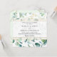 Este Convite de Casamento de Trendy apresenta uma estrutura de ouro opaca adornada com lindas folhas de cor d'água eucalipto e foi emparelhada com uma letra de caligrafia branca e uma letra de serifa clássica. Para fazer alterações avançadas, vá para a opção "Clique para personalizar mais" em Personalizar este modelo.