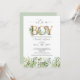 Este belo convite do Chá de fraldas Boy apresenta folhas verdes de eucalipto com toques de tipografia verde e dourada. Os itens correspondentes estão disponíveis no Verde Eucalyptus Pink É uma coleção de Chás de fraldas Boy.