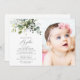 Invite friends and family in style and set the tone for your special day with this elegant baptism invitation. Design features eucalyptus leaves and greenery on white background.